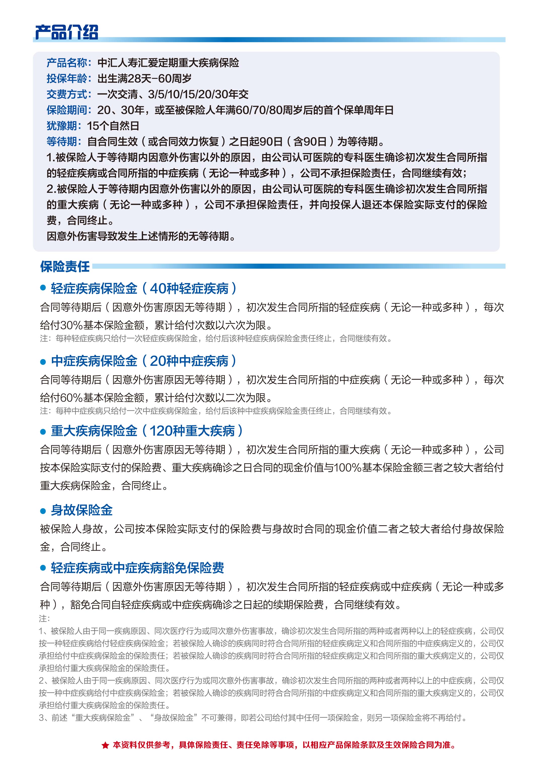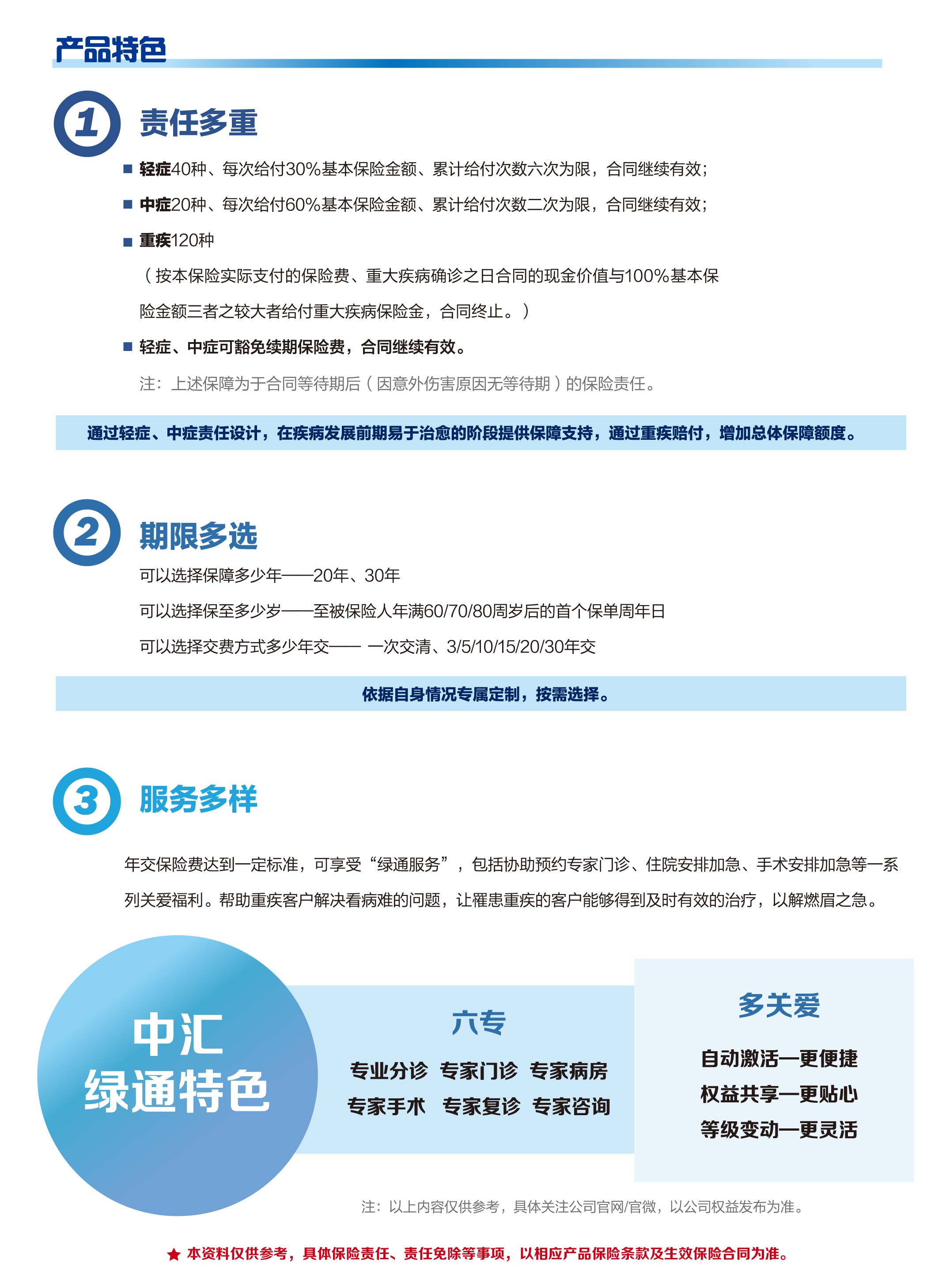 保险期间: 20、30年,或至被保险人年满60/70/80周岁后的首个保单周年日