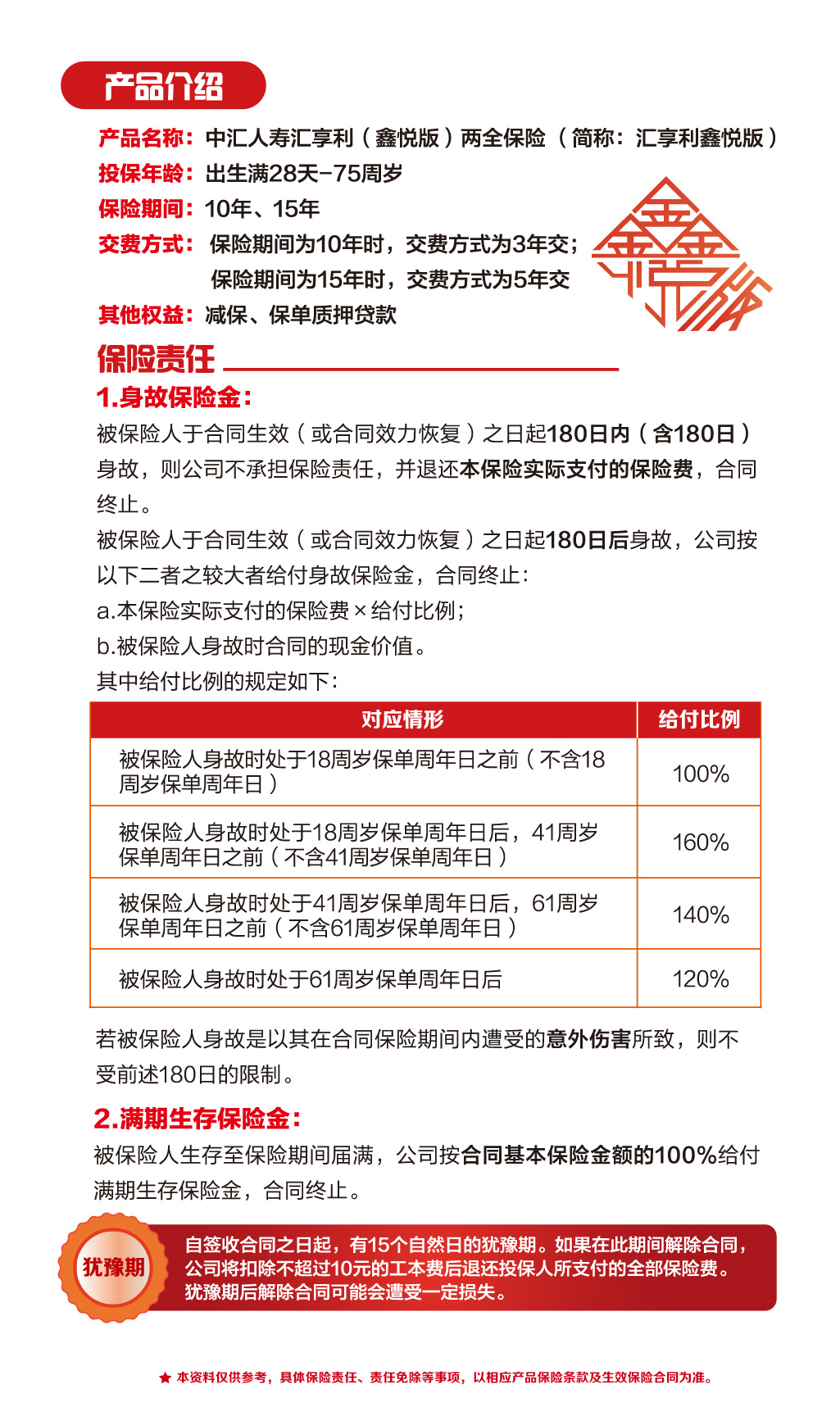 中汇人寿汇享利(鑫悦版)两全保险