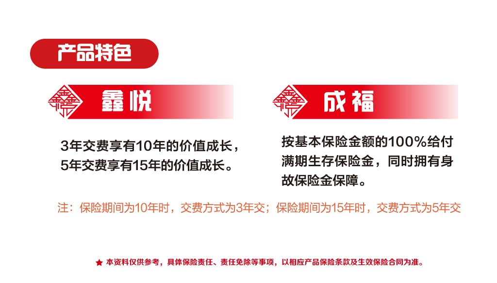 交费方式: 保险期间为10年时,交费方式为3年交;保险期间为15年时,交费方式为5年交