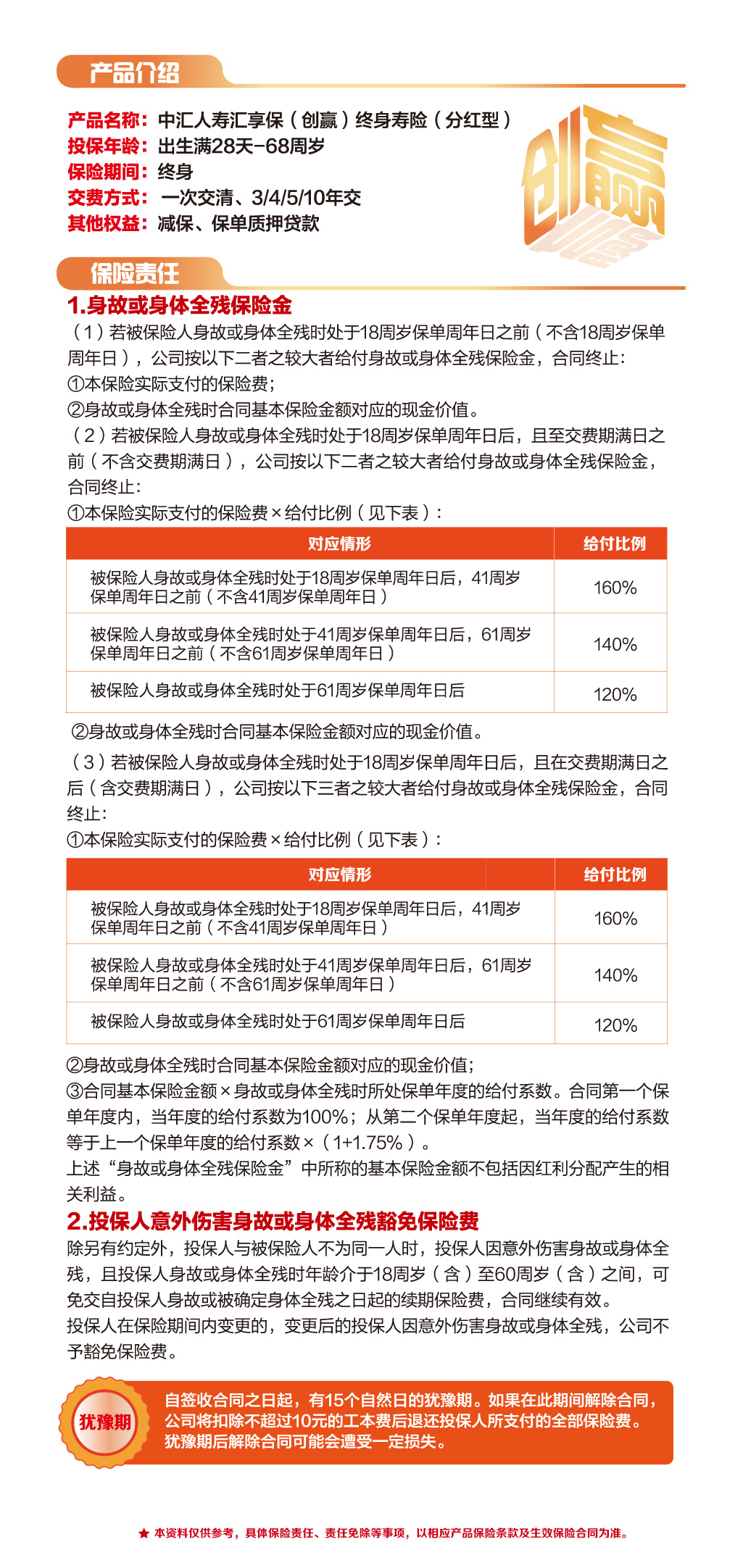 中汇人寿汇享保(创赢)终身寿险(分红型)